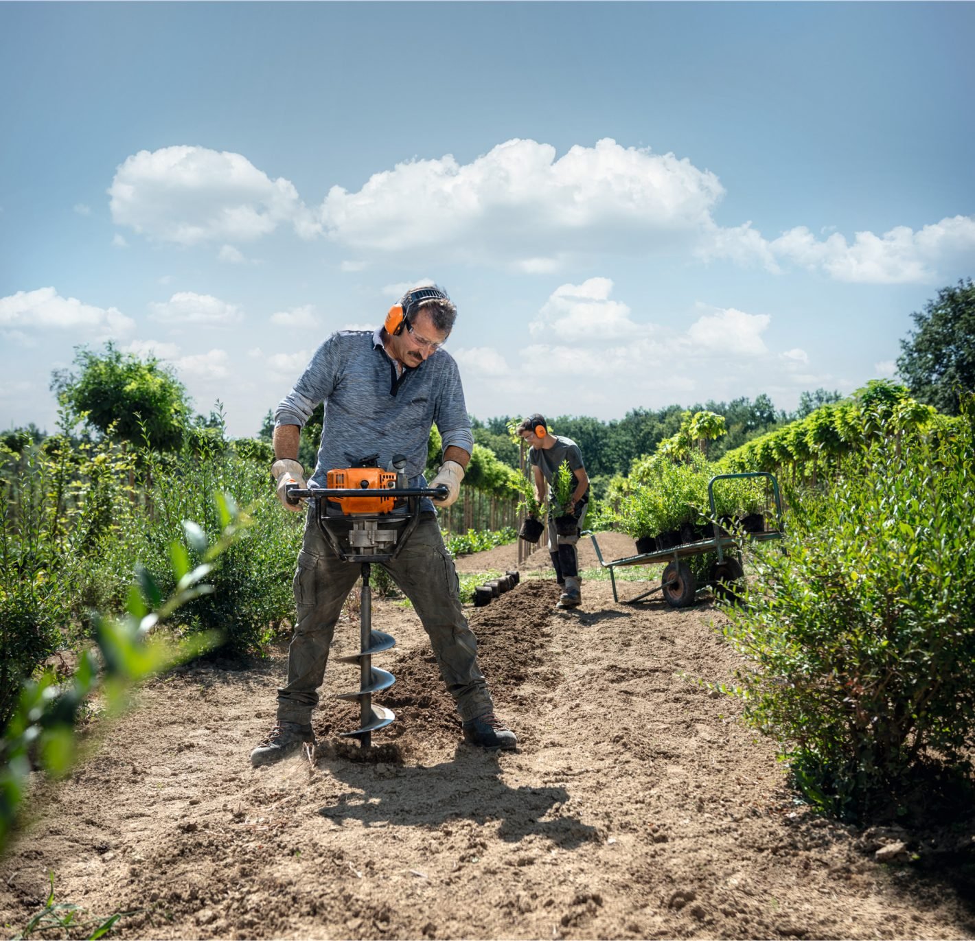 Ahoyadora BT 230 de gasolina: ideal para perforar agujeros para vallas o postes de apoyo, y para hacer hoyos de plantación.